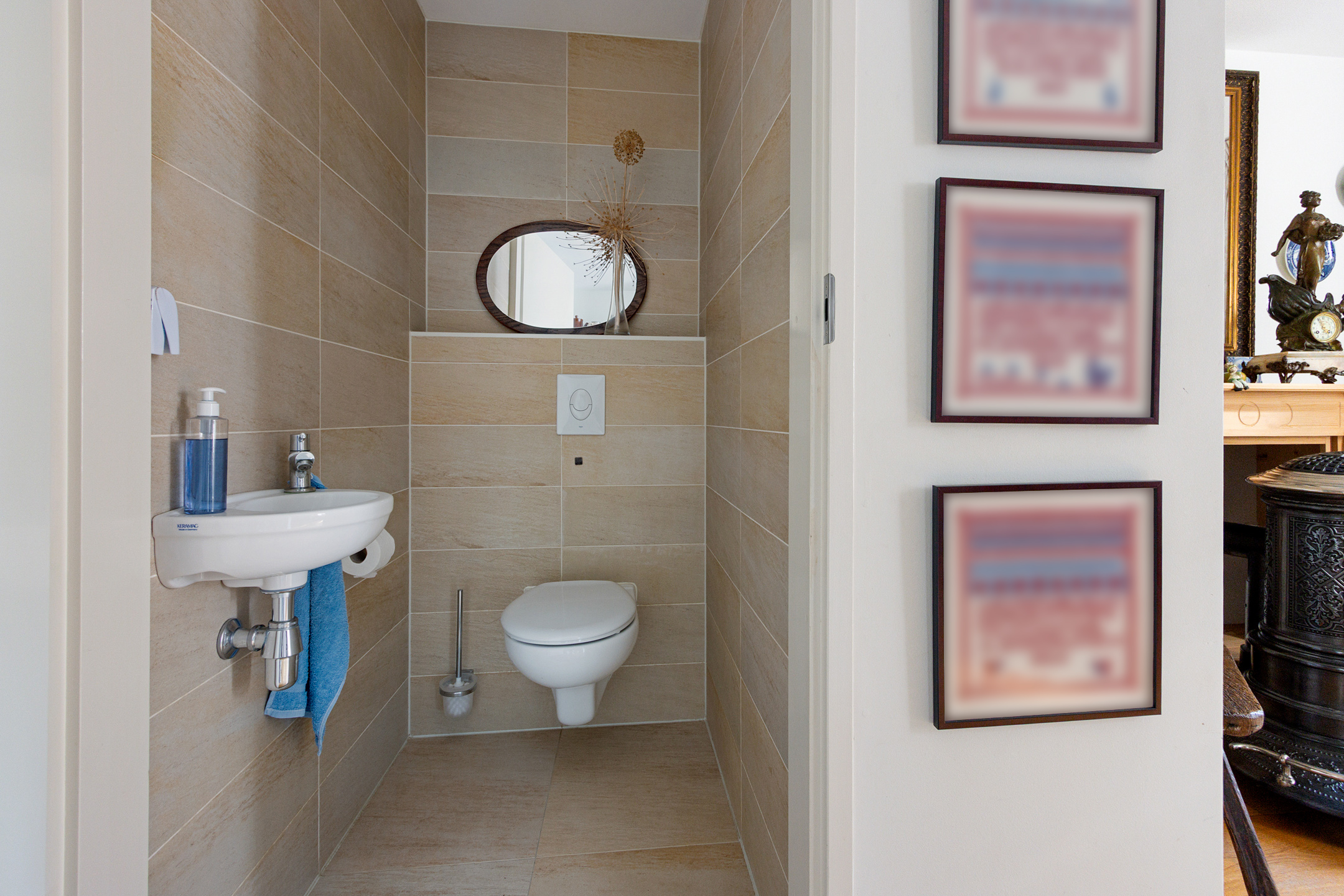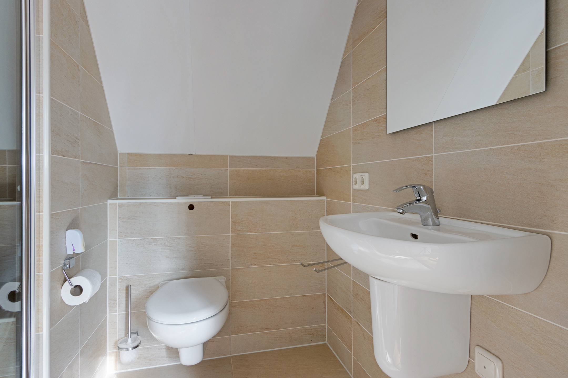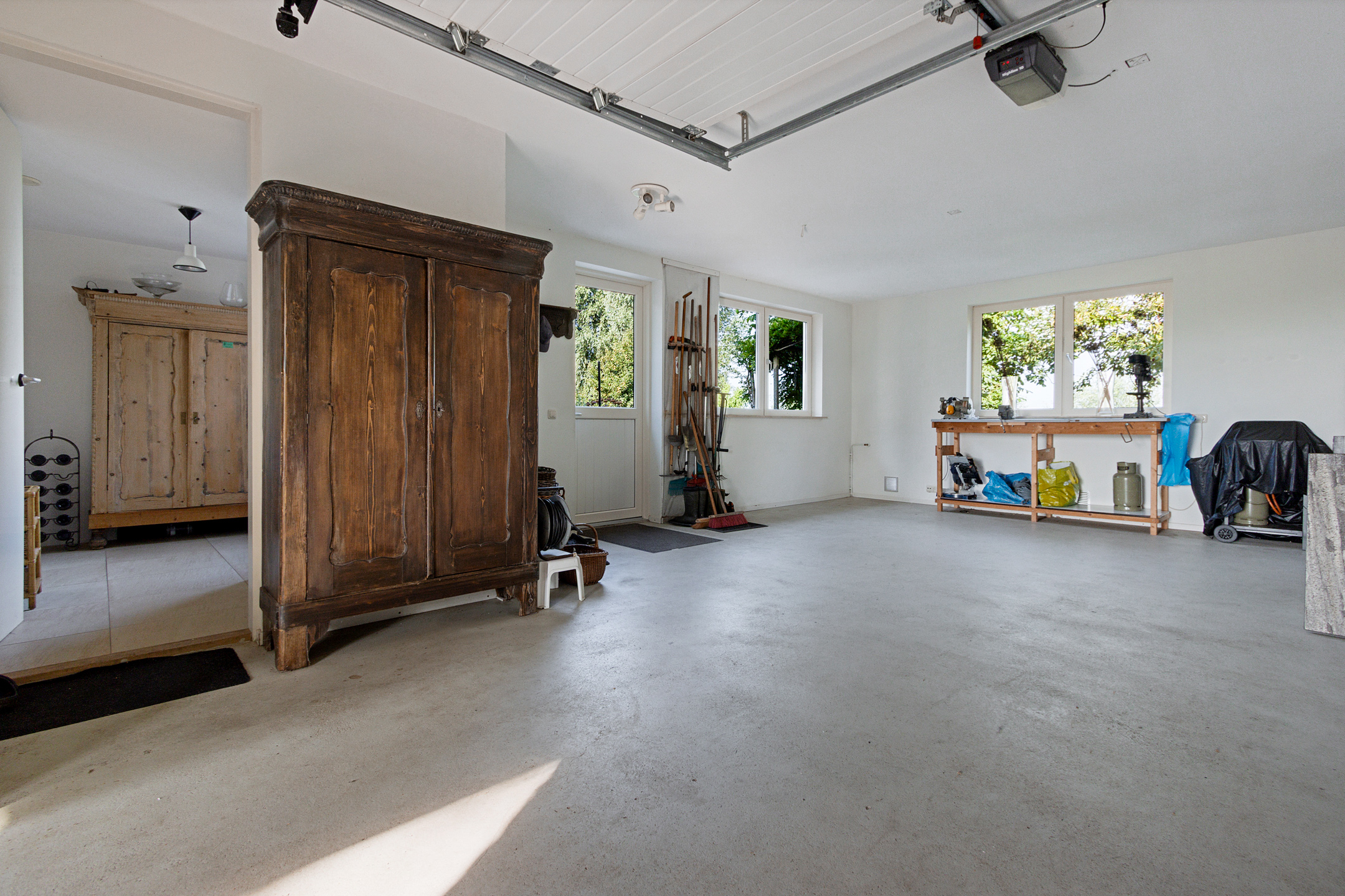 Aangrenzend aan de ruime hal bevindt zich de praktische bijkeuken met wasmachineaansluiting. De ruime inpandige garage is voorbereid op gebruik als slaapkamer met badkamer (aansluitingen voor water en elektra aanwezig), waardoor gelijkvloers wonen hier eenvoudig te realiseren is.