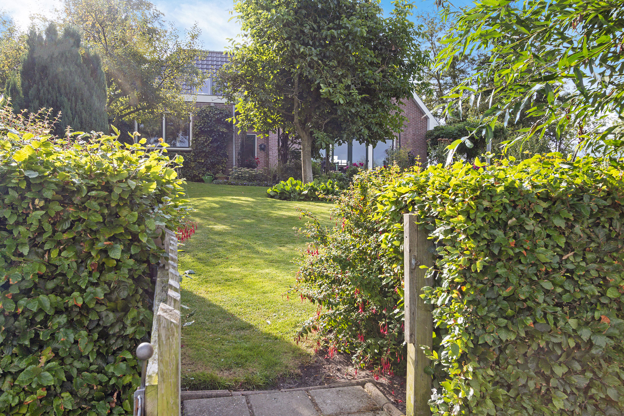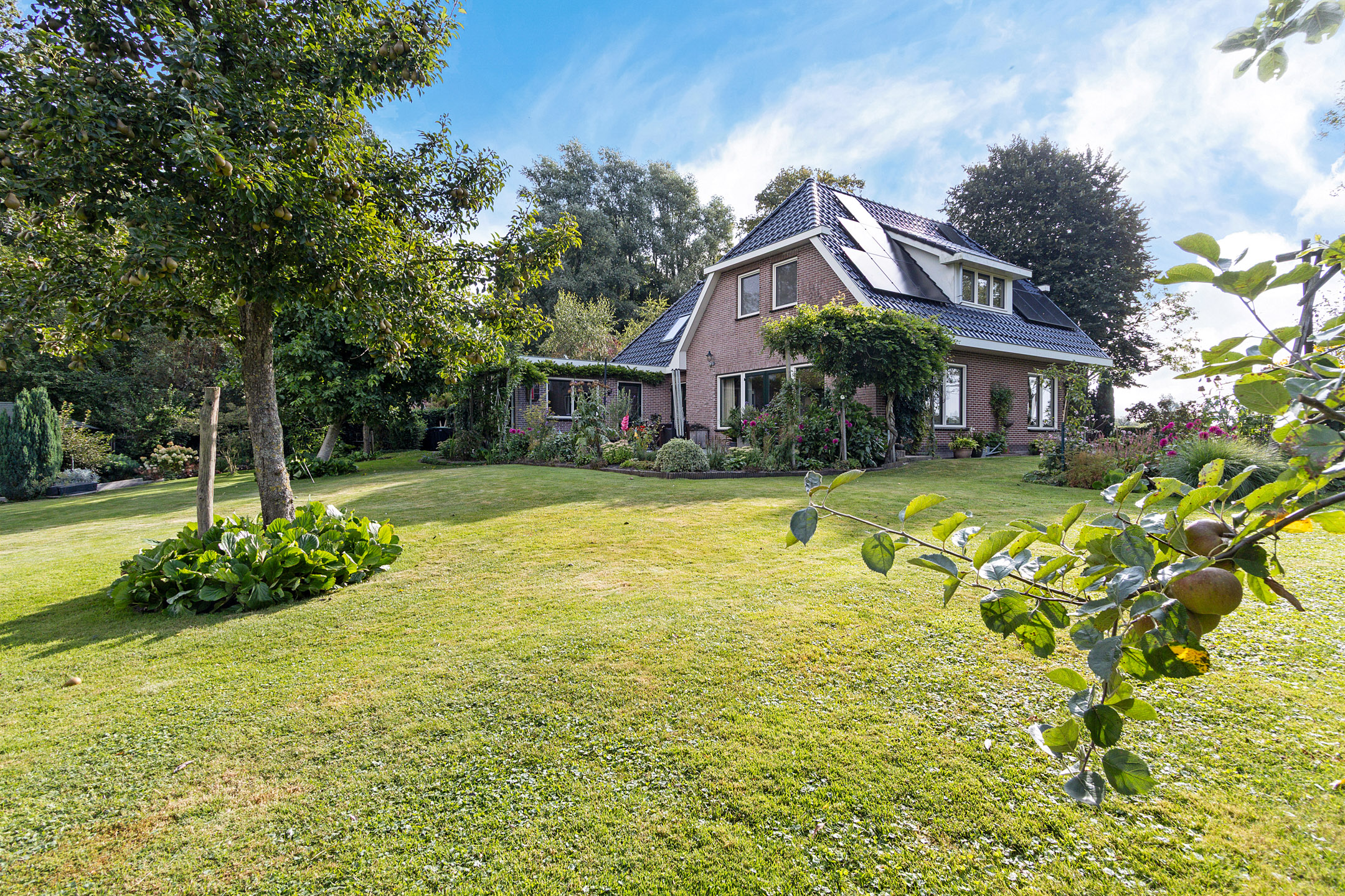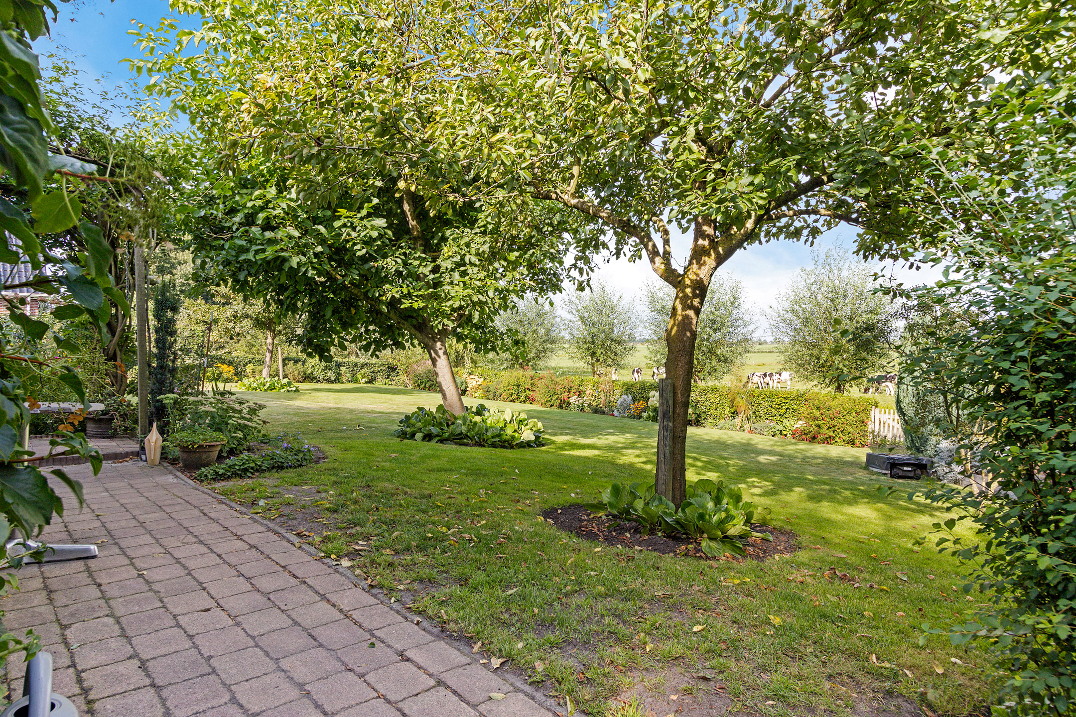 De woning staat op een royaal perceel van 1.370 m² eigen grond. De tuin is fraai aangelegd met gazon, volwassen beplanting en fruitbomen. Op het ruime terras geniet u de hele dag van zon en uitzicht, omringd door bloeiende borders en rust. In de tuin staat een sfeervol tuinhuis met openslaande deuren: een heerlijke plek om beschut te zitten of te werken met zicht op de landerijen en het Friese landschap.
