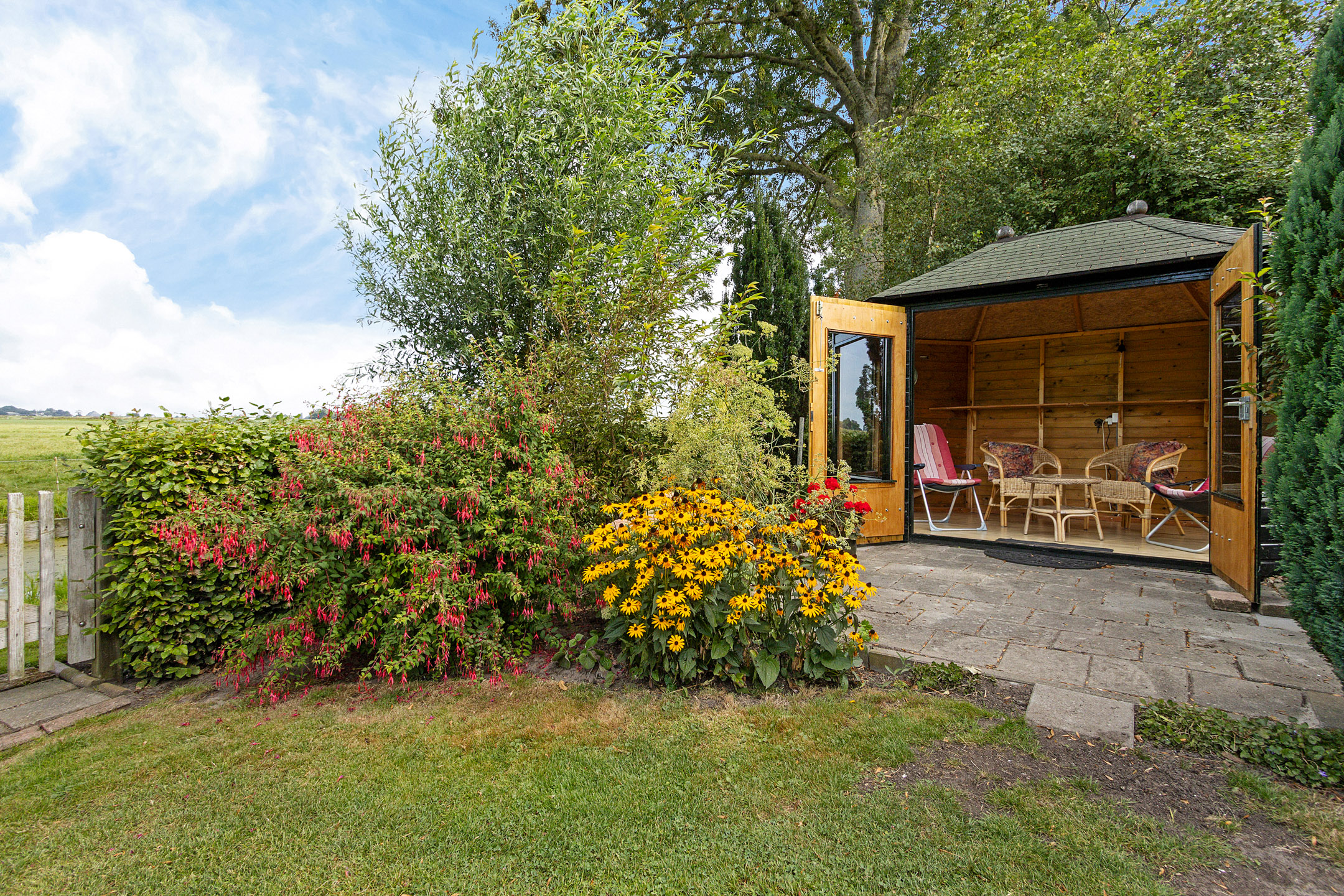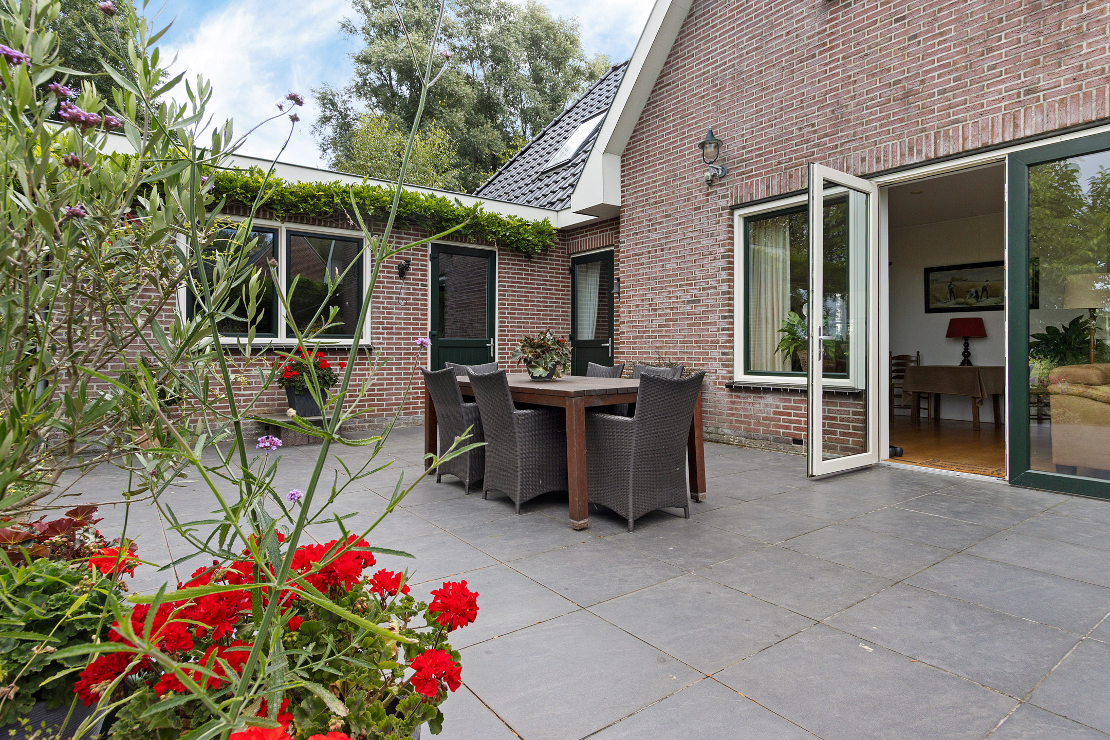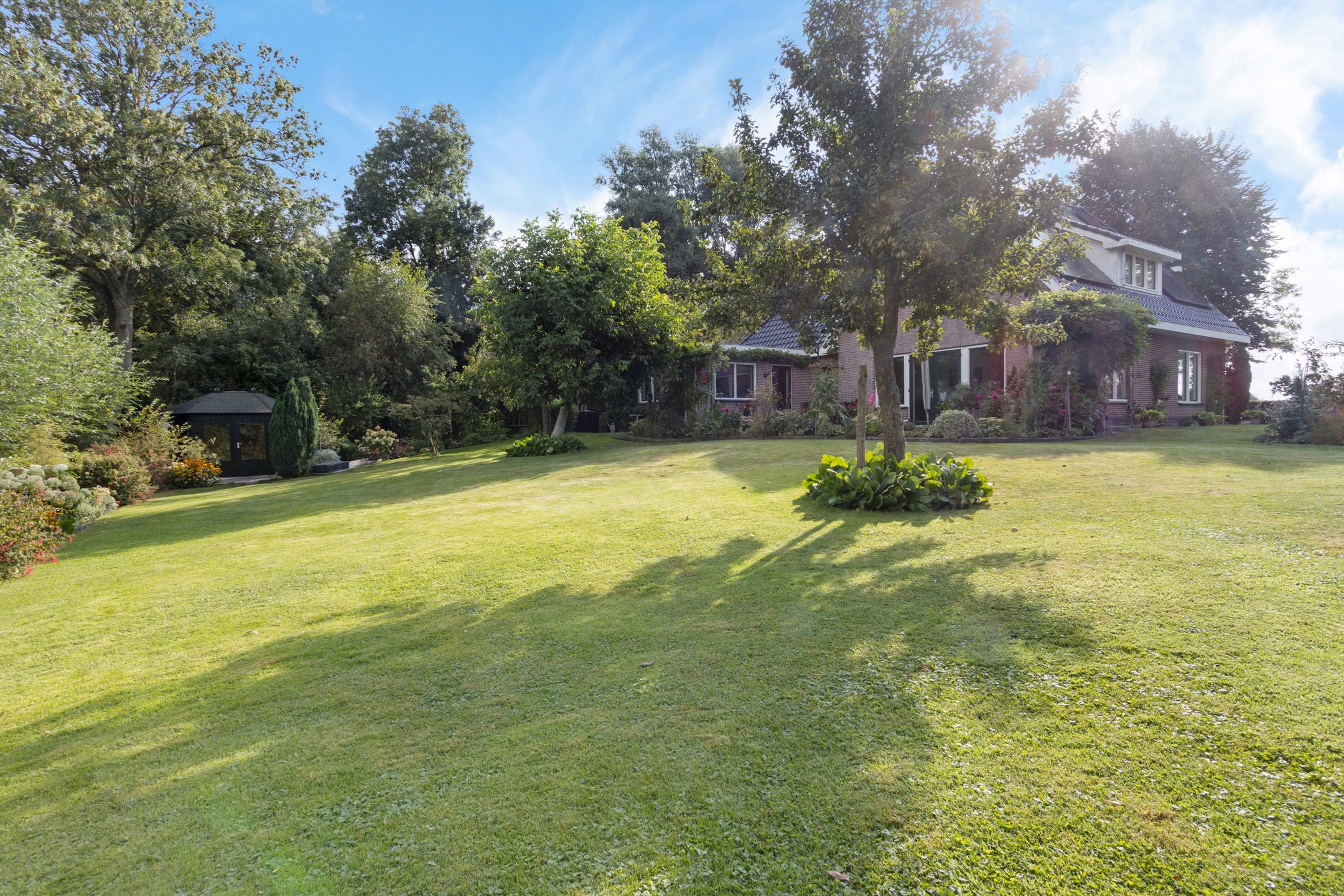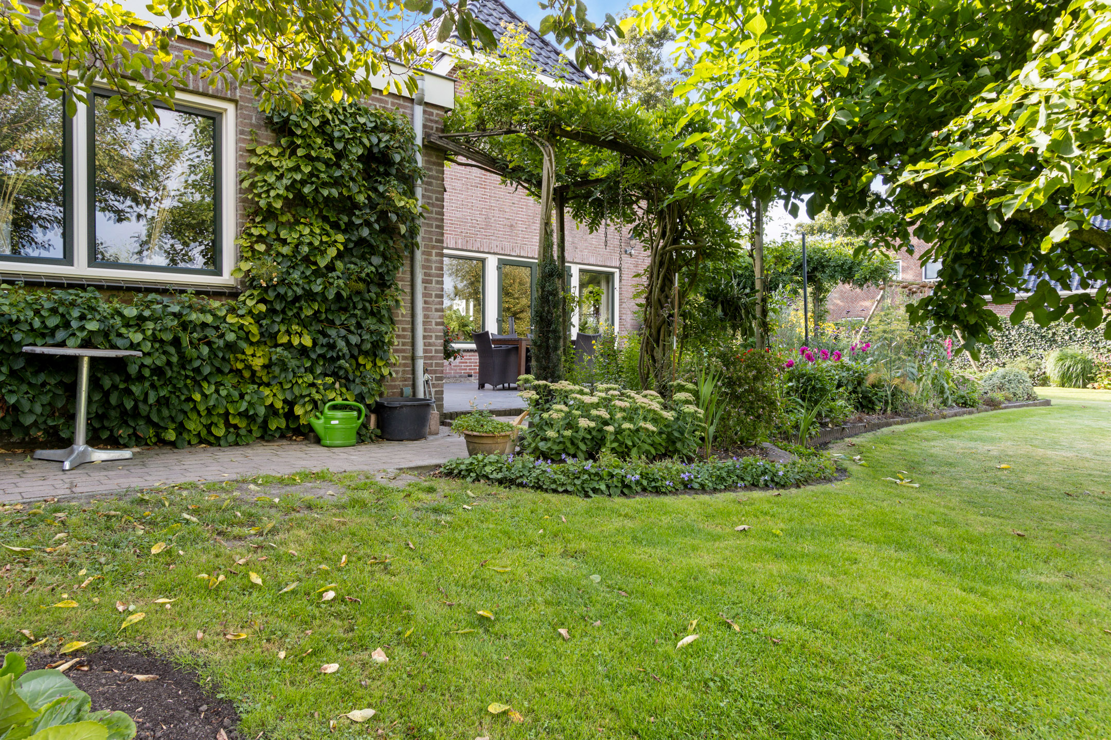 De woning staat op een royaal perceel van 1.370 m² eigen grond. De tuin is fraai aangelegd met gazon, volwassen beplanting en fruitbomen. Op het ruime terras geniet u de hele dag van zon en uitzicht, omringd door bloeiende borders en rust. In de tuin staat een sfeervol tuinhuis met openslaande deuren: een heerlijke plek om beschut te zitten of te werken met zicht op de landerijen en het Friese landschap.